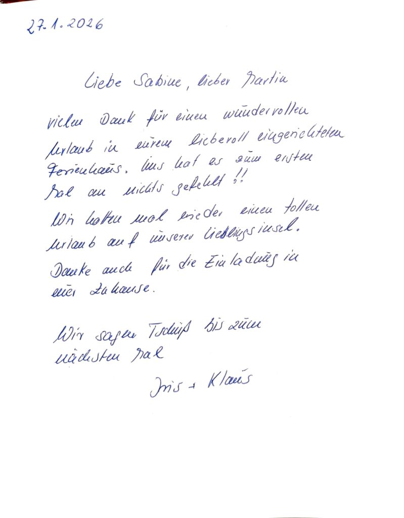 Am Tag nach der Buchung wurde die Kommunikation mit Sabine hergestellt und das ging bis zum Ende weiter. Dies ist jemand, der sich sehr um seine Gäste kümmert und sicherstellt, dass sie einen fantastischen Urlaub haben, was wir auch getan haben. Eine wunderbare Person, mit der man umgehen kann.. . Die Unterkunft war absolut fantastisch, an jedes kleine Detail wurde gedacht, es fühlte sich eher wie zu Hause an als wie in einer Ferienwohnung. Das Bett war so bequem und wir haben so gut geschlafen, kein Lärm von irgendwoher. . Die Dusche war unglaublich und schöne weiche Handtücher waren für uns da, auch Strandtücher.. In der Küche wurde ein Willkommenspaket mit lokalen Leckereien hinterlassen, was eine sehr nette Geste war.. . Wir haben den Garten absolut geliebt, eine echte Sonnenfalle und wieder wunderschön gemacht, er war so ruhig und privat und fühlte sich an wie unsere eigene kleine Oase auf der Welt.. . Dies muss das beste Hotel sein, in dem wir je bei den besten Gastgebern gewohnt haben. . Wir können es kaum erwarten, wiederzukommen.