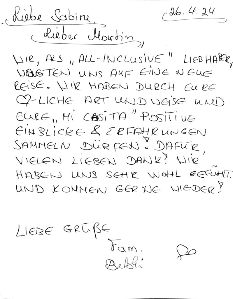 Alles war sehr gut. Wir haben uns wie zu Hause gefühlt. Es fehlte uns an nichts.